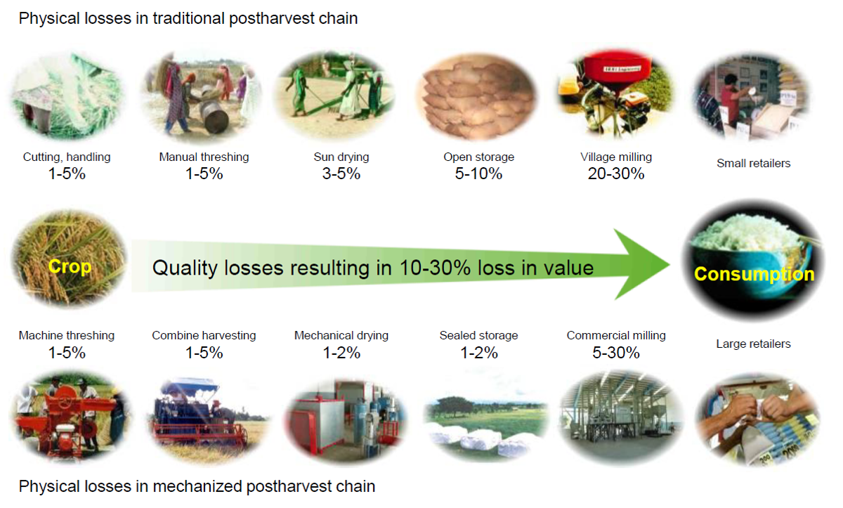 One of the main challenges of the Twenty-first Century is to feed a population of 9 billion people by 2050. This requires urgent action to ensure a steady food supply, access to food, and food healthy utilization to the growing population. Infrastructural development is critical to reduce food lost in supply chains. Infrastructure in food storage and transportation directly addresses the multi-dimensional aspects of food security. First, infrastructure brings regional development with potential increase in community income, which, in turn, will have more access to the locally produced and imported food. Second, well-designed infrastructure on food storage and transportation enhances food safety, consequently, improving food utilization. Finally, improved infrastructure increases resilience for human adaptation to climate change, therefore, allowing a more stable supply of food.
